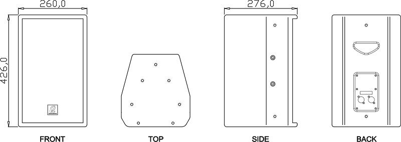 箱體外形 Physical 梯形 箱體材料 Enclosure Material 15厘厚樺木夾板 箱體網面 Enclosure Material 模壓鋼制圓形孔網面,內貼專業(yè)防水透氣爆破棉 表面漆 Finish 水性環(huán)保多層耐刮、耐腐蝕、防水油漆 吊裝點 Handing Position 18個M8吊掛螺絲孔位 支撐座 Pole Mount 底部一個Φ35mm支撐座 |